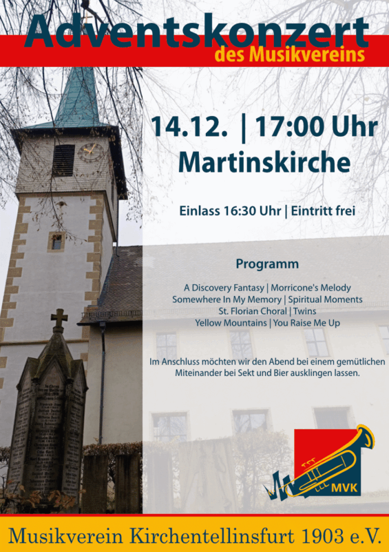 Herzliche Einladung zu unserem Adventskonzert am 14. Dezember. Komm um 17 Uhr in die Martinskirche und nimm eine kurze Auszeit von der vorweihnachtlichen Hektik. Lass dich von uns musikalisch verzaubern und genieße ein paar Augenblicke adventlicher Stimmung.